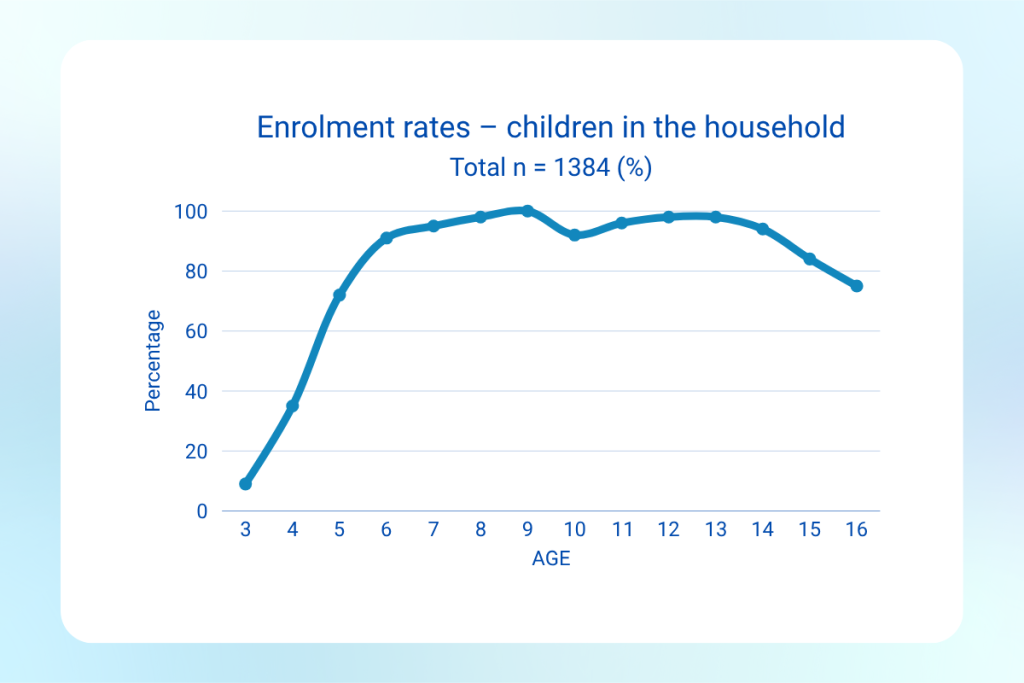 The study also found positive attitudes towards inclusive education, particularly among children with disabilities and ethnic minorities, and shows a good foundation for inclusive programming. With 10-11% of households reporting a child with a disability, inclusion is not optional; it is essential.
