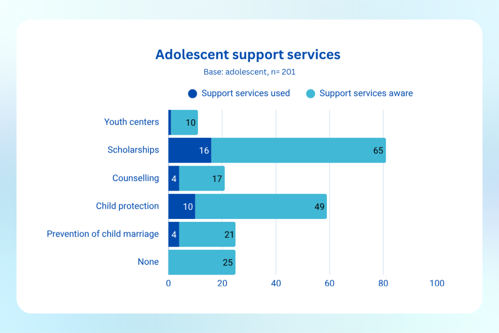 Services such as scholarships, counselling, and youth centers significantly improve outcomes, but are underutilized due to lack of awareness (Figure 4).
